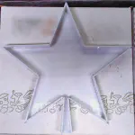 Currently has 62 LEDs. (tree + star = 328 LEDs total) I cut the star by hand using my jig saw from acrylic (32% translucent cast acrylic) and assembled it with acrylic glue.