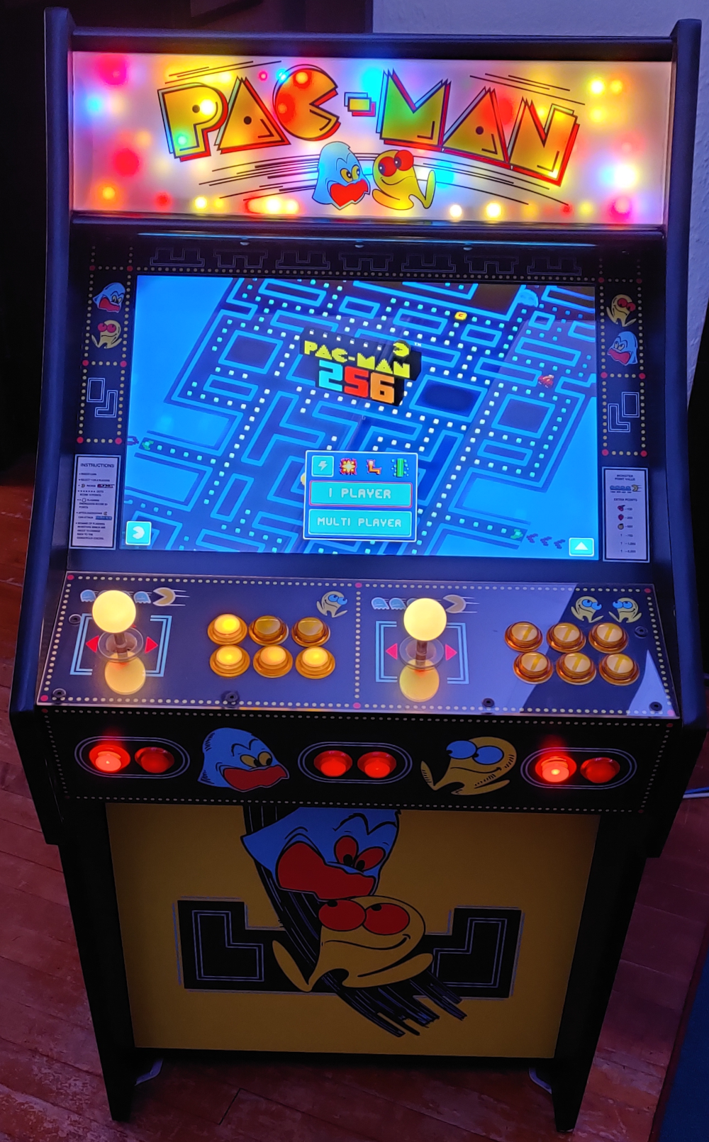 Some pictures of, and details about, my custom Pac-Man arcade cabinet.