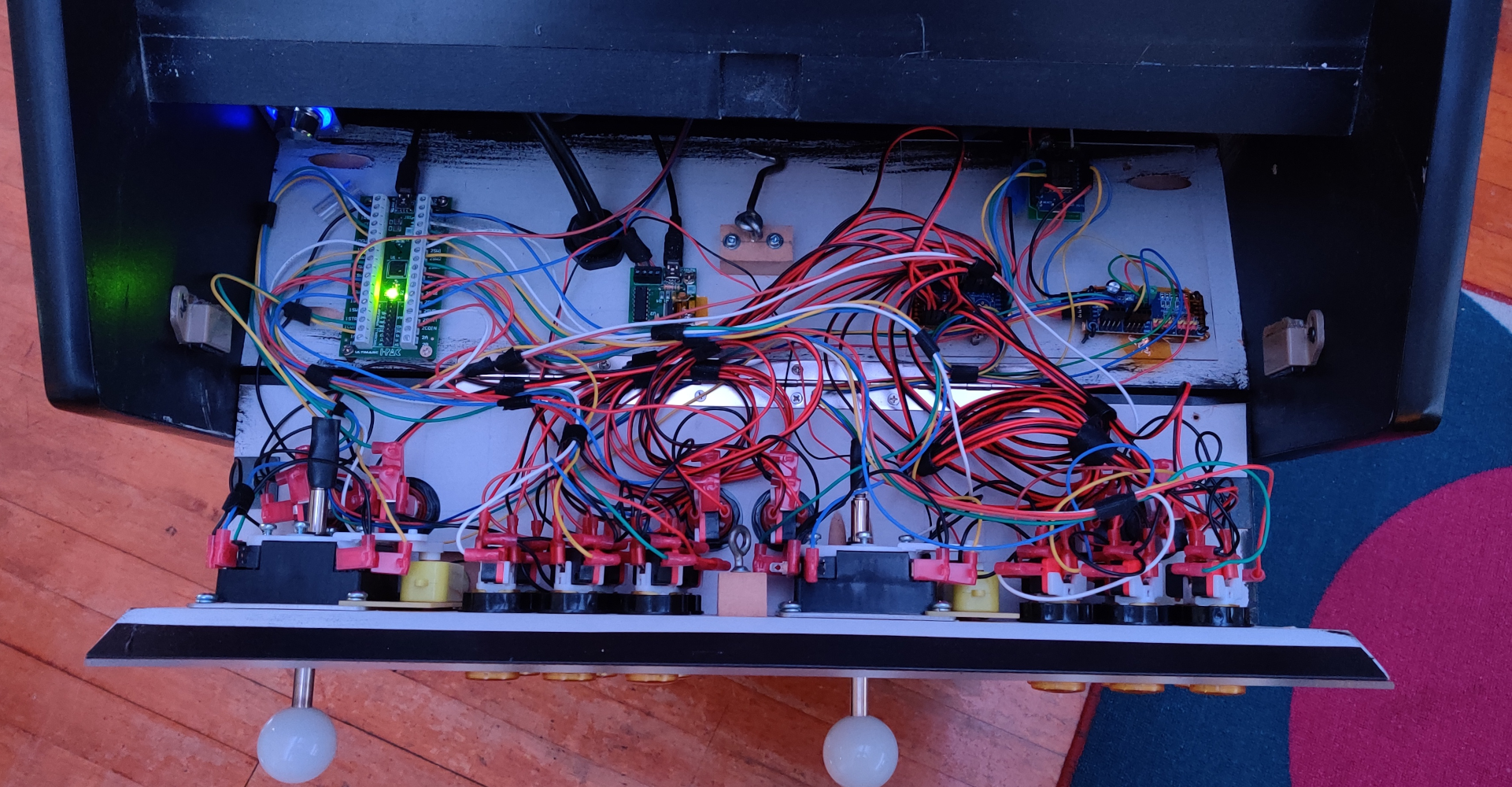 I have a combination of custom scripts and Pegasus for the menu along with retroarch and libretro for the emulation. Pegasus also supports launching steam games, which I use to play Pac-Man 256 on the cabinet, which is really fun. It is actually a multi-player game so you can play it 2 player on the cabinet. I wrote some custom software to do some magic like handling custom button mappings without needing to modify keymaps for either the games or the I-PAC for certain games, reading the MAME xml to illuminate the buttons games actually use, and swapping the servo sticks automatically depending on what is being launched. I also use the excellent skyscraper to generate the screenshots for all the games.